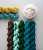 - 5 mini skeins of Superwash Worsted (100% superwash merino wool) ~50 yards (45 m) each