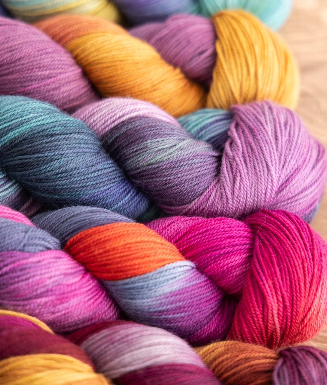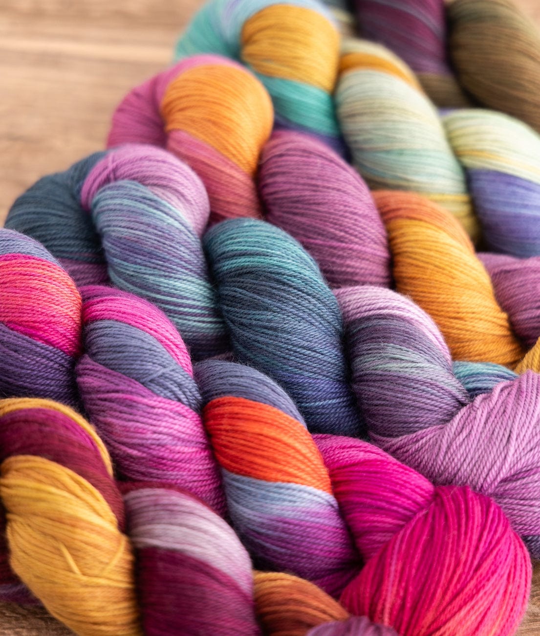A perfect blend of warmth and strength to make a hardwearing sock yarn that can stand up to your affection and abuse. Tough Love Sock is our best-selling yarn and knits up beautifully into fine-gauge sweaters, small shawls, as well as socks! This 3-ply yarn is so versatile, knit it firmly for hard wearing socks, knit it loosely for drapey shawls, or knit it doubled for a great worsted-weight substitute.
