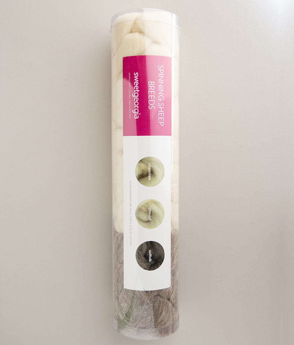 Sample three beautifully prepared spinning fibres with each of our Spinning Sheep Breeds Kit options. In the comprehensive Spinning Sheep Breeds School of SweetGeorgia workshop taught by Rachel Smith, learn about exploring various sheep breeds, including fine and medium wools, long and down wools, and lastly, double-coated and primitive.