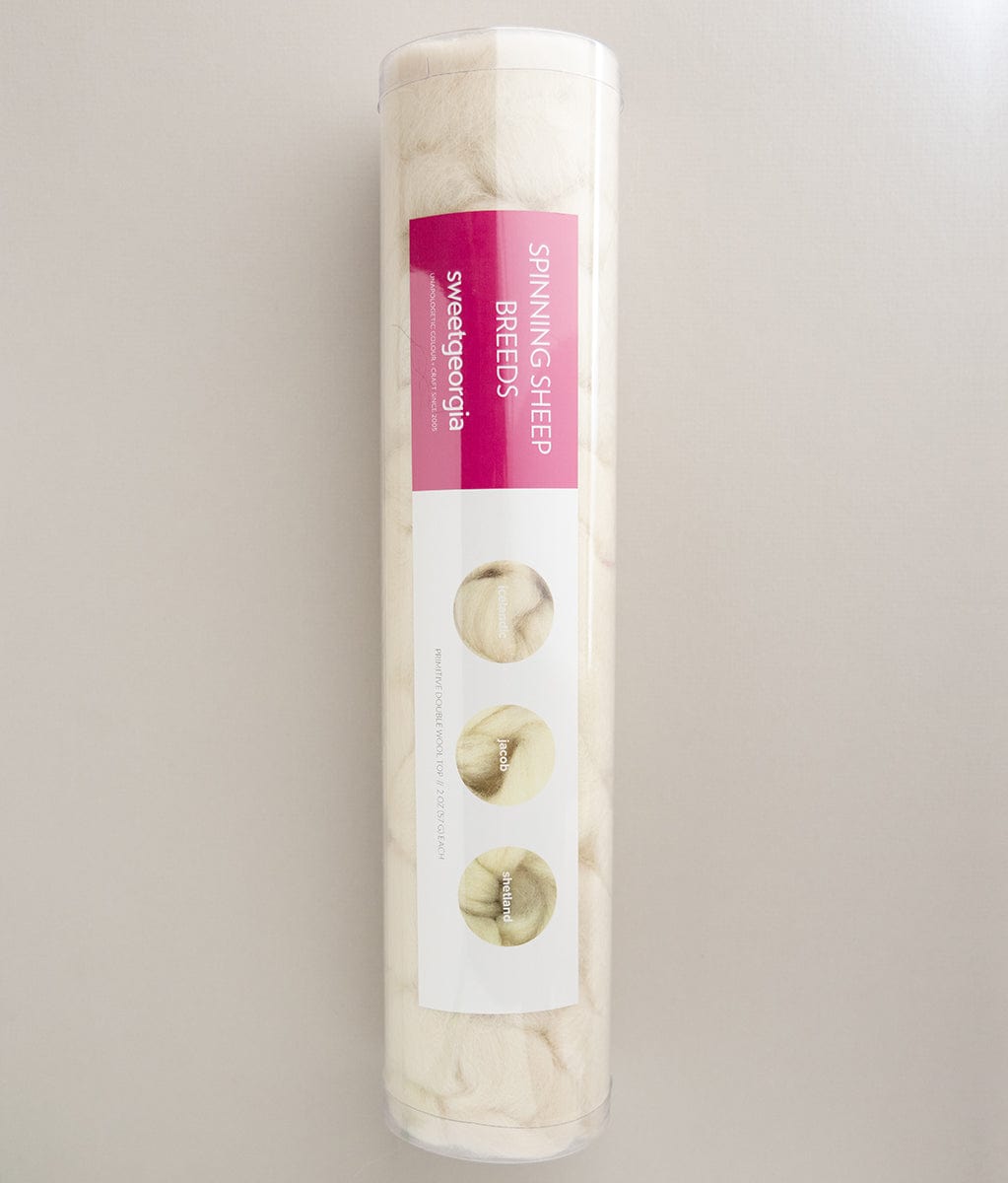 Sample three beautifully prepared spinning fibres with each of our Spinning Sheep Breeds Kit options. In the comprehensive Spinning Sheep Breeds School of SweetGeorgia workshop taught by Rachel Smith, learn about exploring various sheep breeds, including fine and medium wools, long and down wools, and lastly, double-coated and primitive.