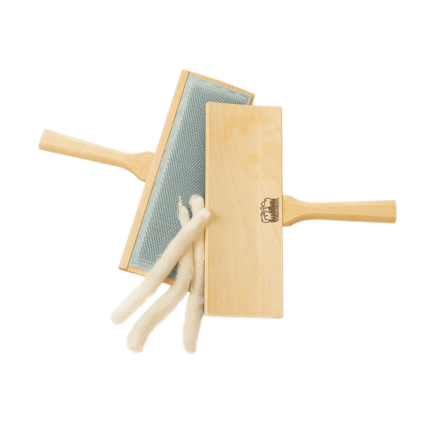 Schacht built a lifetime of service into their hand carders. The paddles are specially shaped to protect the card cloth from wear, and they attach to the handles with tenons for superior strength. All carders have a Danish oil finish and come with curved backs except for the flick carder.