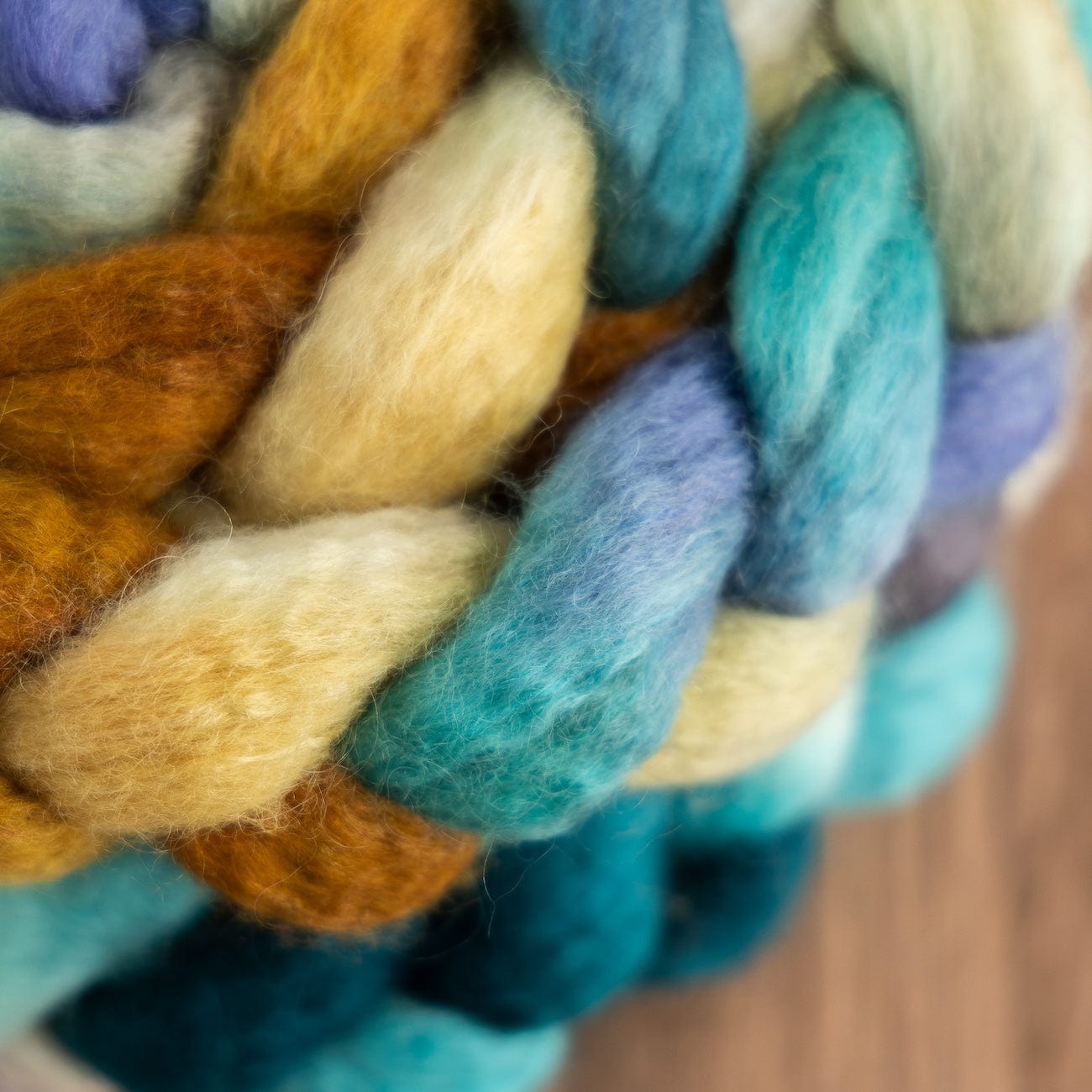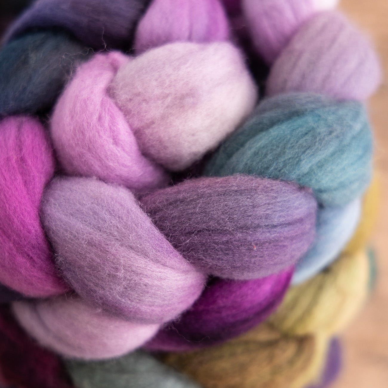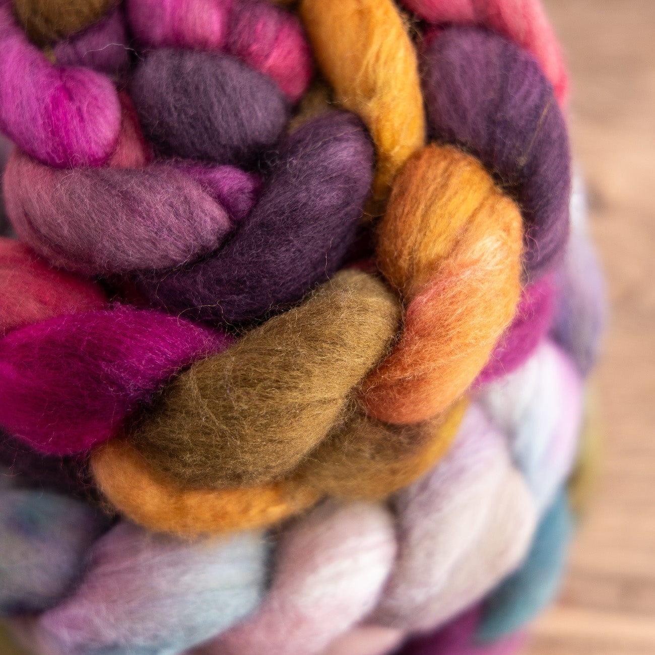 The fluff that gets transformed into stuff, spinning fibre is anything that can be twisted into yarn, including: wool, silk, cashmere, yak, cotton, flax, and so much more. At SweetGeorgia, we offer spinning fibre in the form of hand-dyed wool top, where the individual fibres have been aligned to create a smooth preparation. We dye these fibres on the following fibre bases: