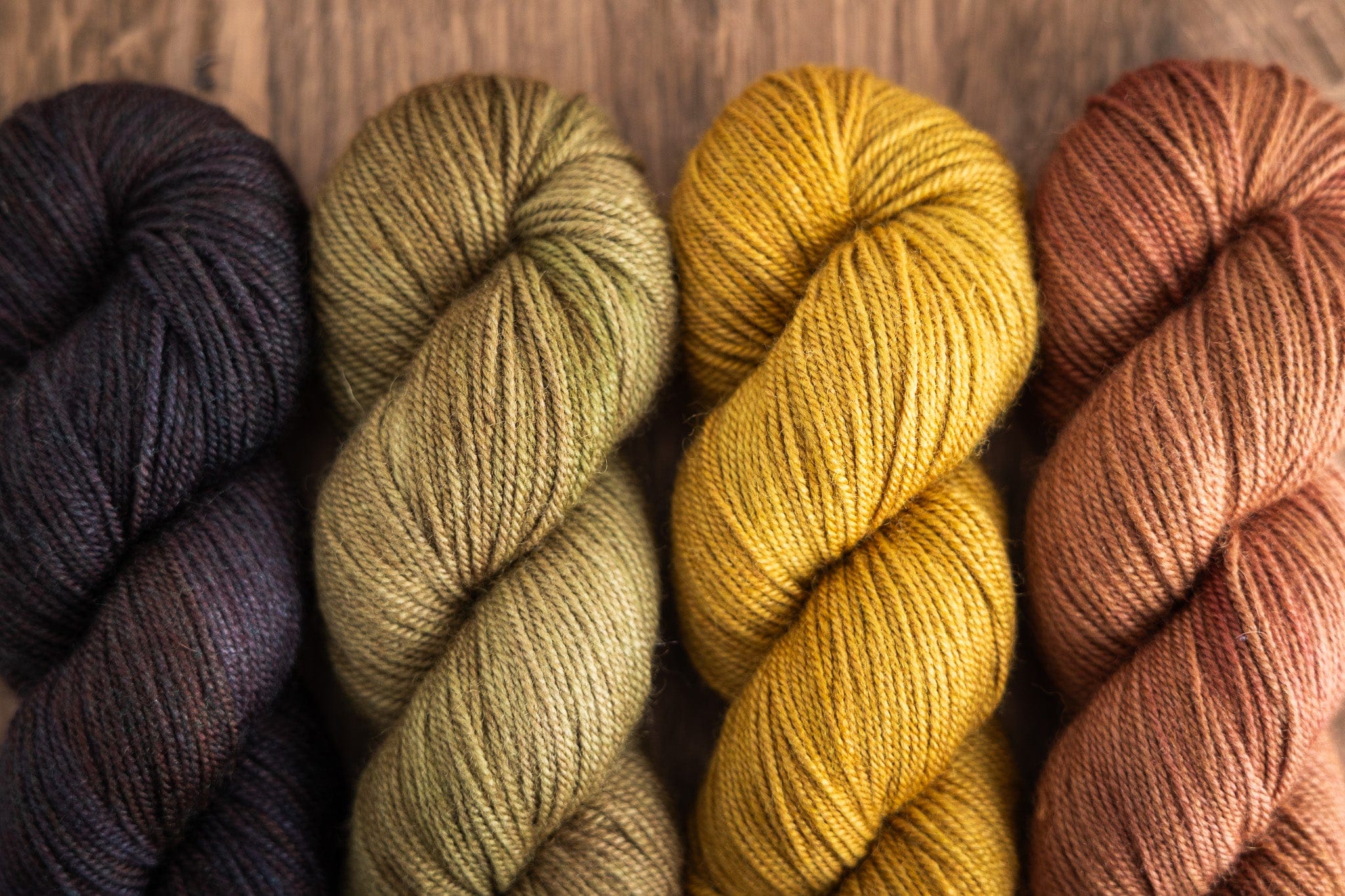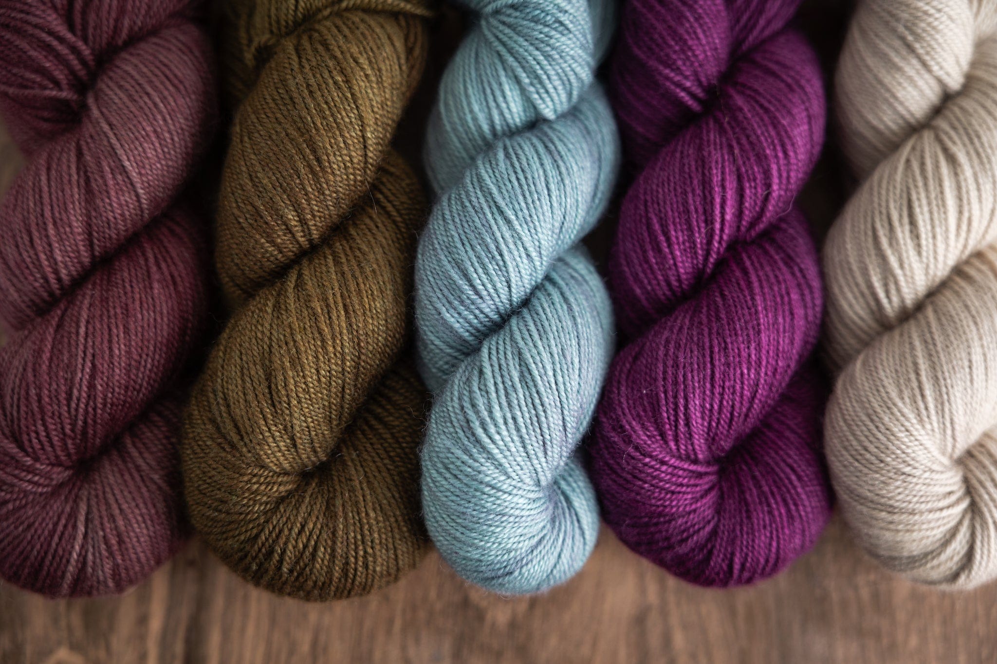 Please note: For the colourway knit swatch images, these are shown dyed on the SweetGeorgia Tough Love Sock yarn base — colours will usually be more muted and desaturated on BFL+Silk blends. Despite every effort to provide accurate images of each product's colour, actual colours may vary slightly due to different device screen settings.