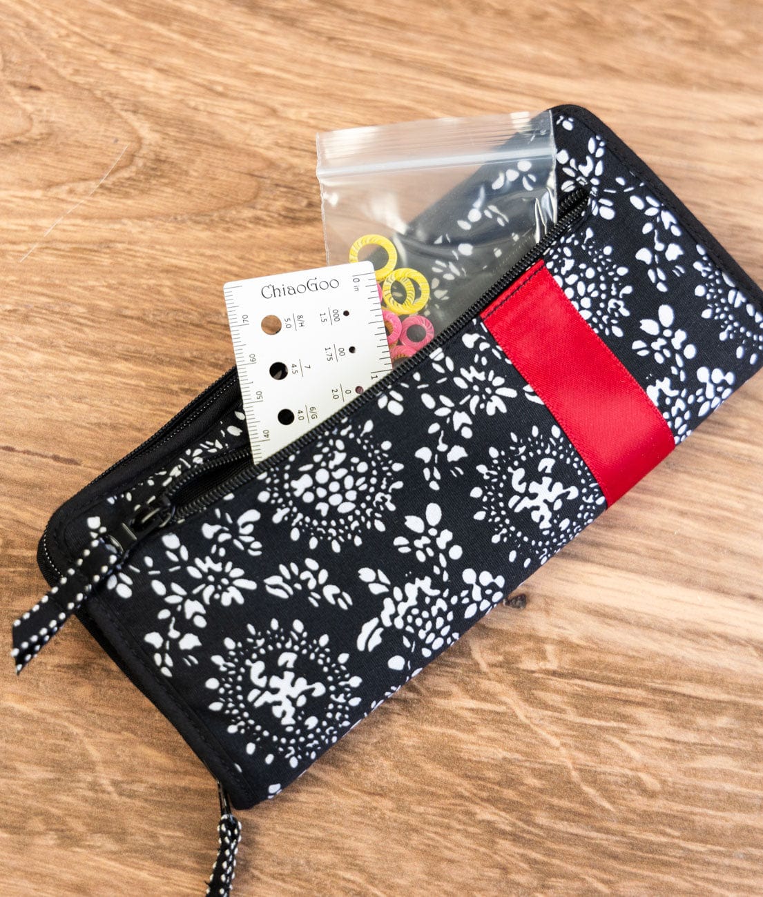 This thoughtfully curated sock knitting set features six pairs of 6" (15 cm) double-pointed needles made from high-quality surgical stainless steel. Available in an essential range of sizes – US 0 (2.0 mm), 1 (2.25 mm), 1.5 (2.5 mm), 2 (2.75 mm), 2.5 (3.0 mm), and 3 (3.25 mm) – these needles offer durability and precision for every project. The set also includes 12 smooth stitch markers and a 3" (8 cm) needle gauge for quick and accurate measurements. Neatly organized in a stylish, zipper-enclosed fabric case with an additional outside pocket, this kit keeps your tools secure and accessible, perfect for knitting on the go!