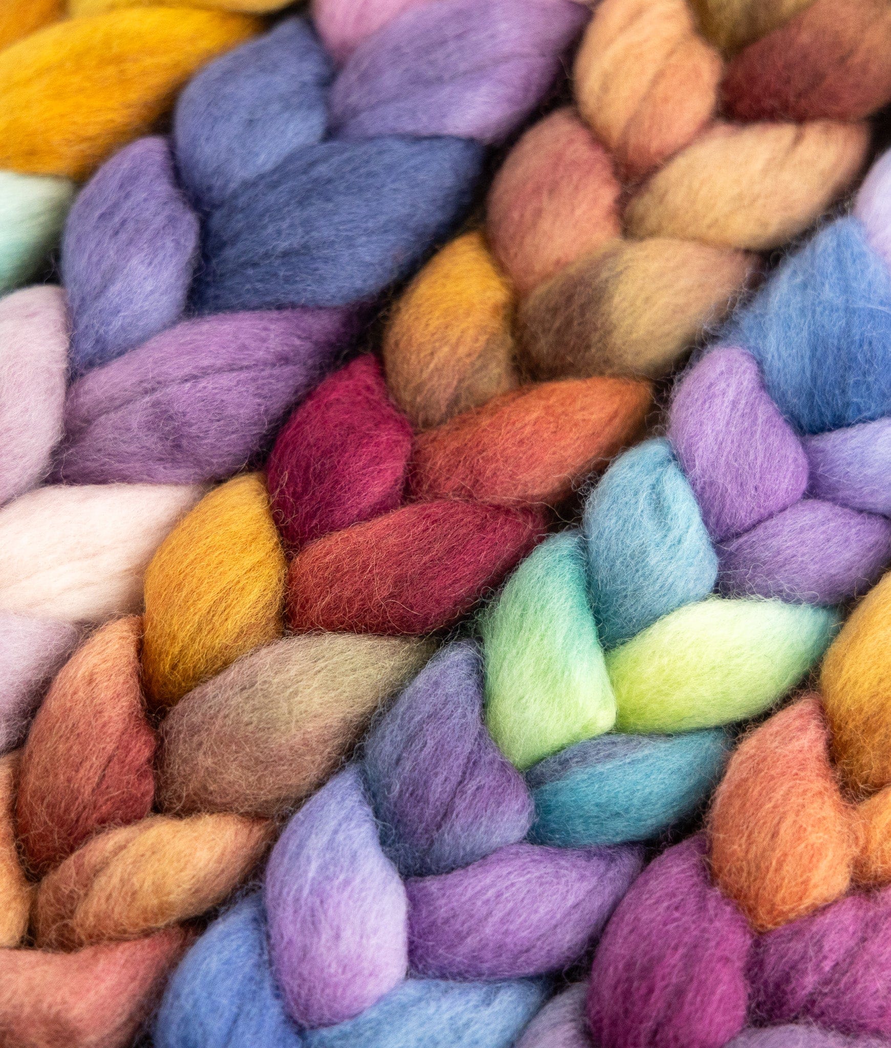 Single braid colourway images are shown dyed on Polwarth+Silk spinning fibre.