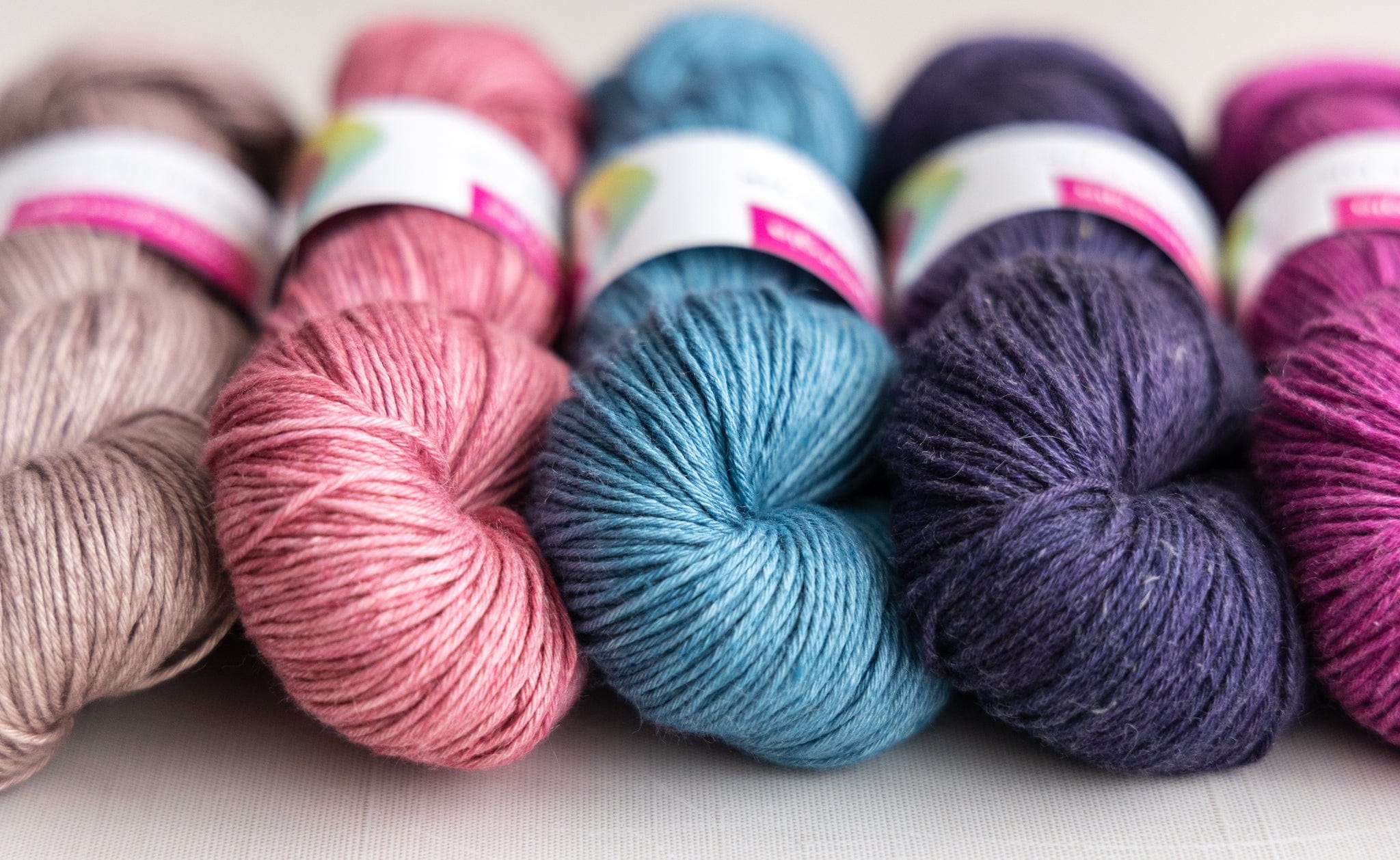 Please note: The colourway swatch images shown are dyed on the SweetGeorgia Tough Love Sock yarn base — colours will usually be slightly lighter and softer on Flaxen Silk blends. Learn more about working with Flaxen Silk blends compared to wool fibres.